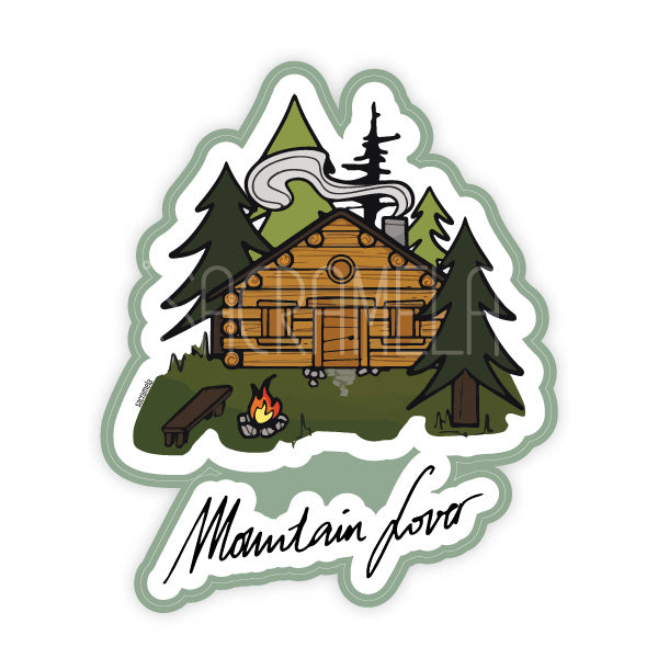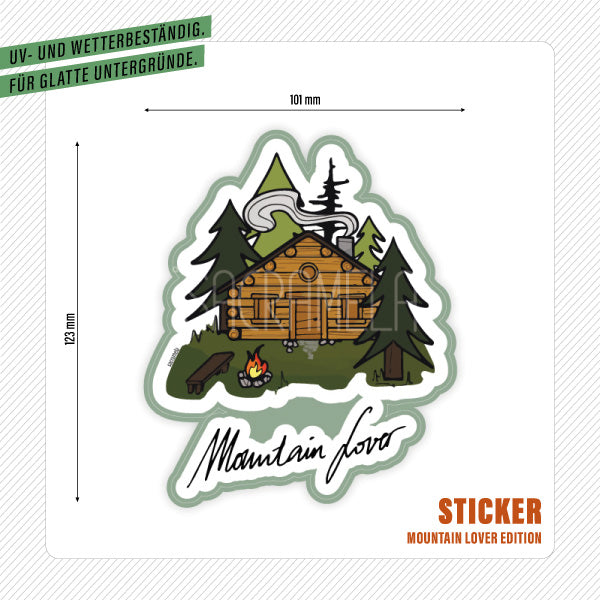 2 bunte, wetter- und UV-beständige Mountain Lover Aufkleber auf einem Sheet.
